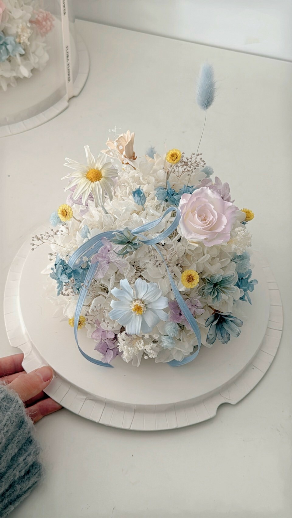 永生花繡球花蛋糕-海藍椰椰 (不可食用)