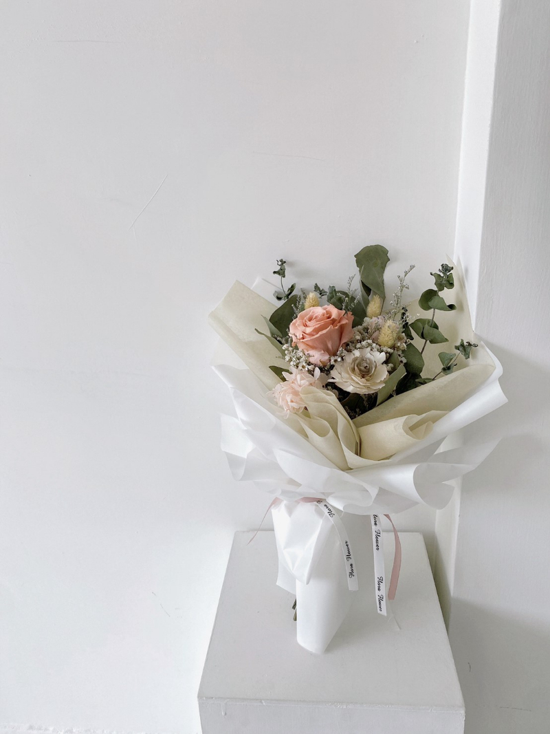 .花禮均為手工製成,成品不會與照片完全一模一樣,若有花材缺貨,設計師將會適時調整更換花材。